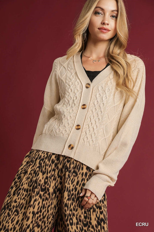 Emma Chunky Cable Knit V-Neck Button-Up Cardigan