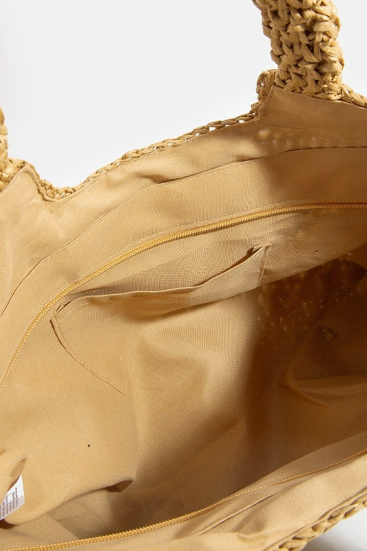 Beach Day Straw Braided Square Tote Bag