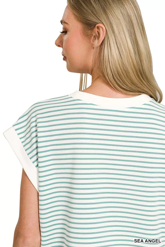 Sarah Stripe Contrast Trim Top & Shorts Set