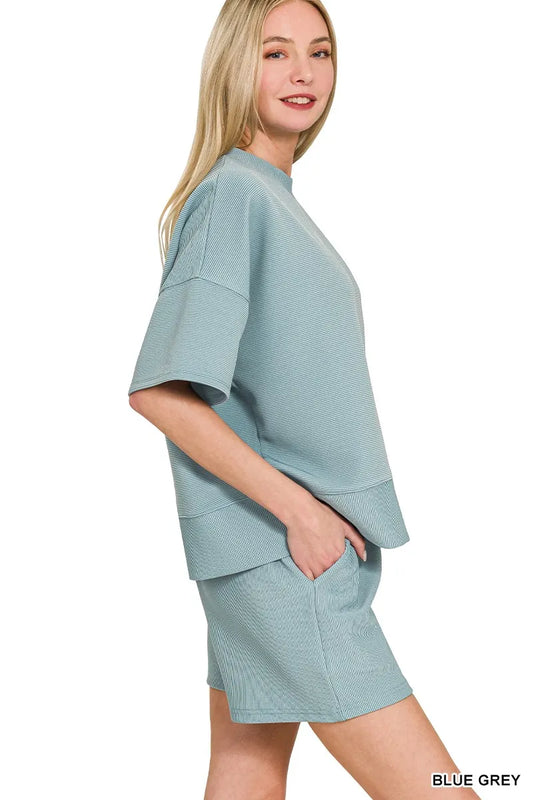 Carly Ribbed Round Neck Waist Banded Tee & Shorts Set