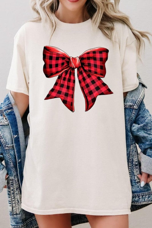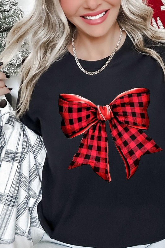 Red Buffalo Plaid Bow Graphic Heavy Cotton Tee