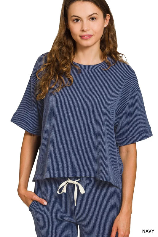Raised Rib Round Neck Long Sleeve Top Plus Size