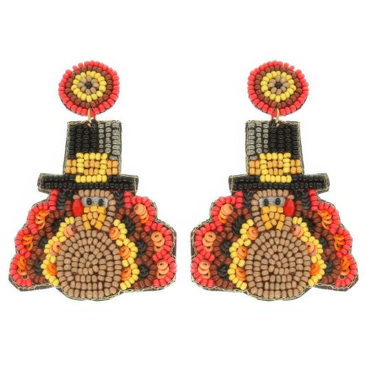 Thanksgiving Turkey Seed Bead Post Earrings