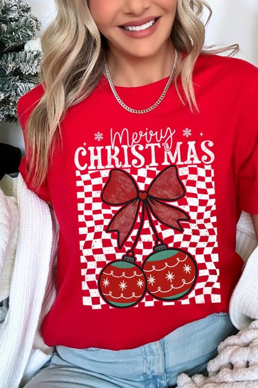 Plaid Merry Christmas Bow Graphic Sweatshirt