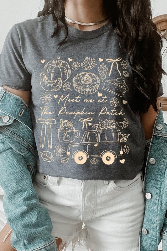 Autumn Leaves Pumpkins Graphic Heavy Cotton Tee