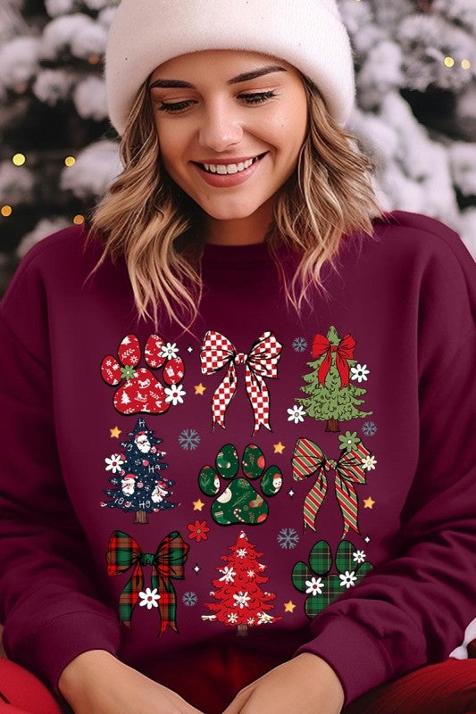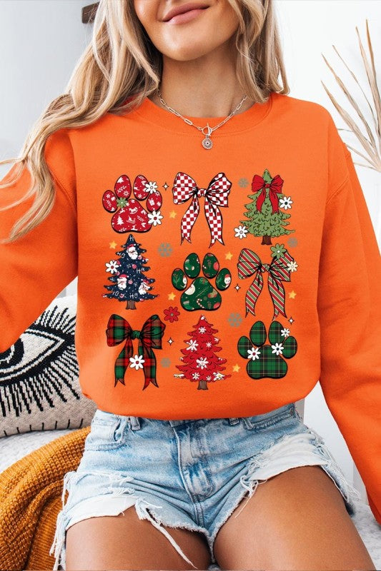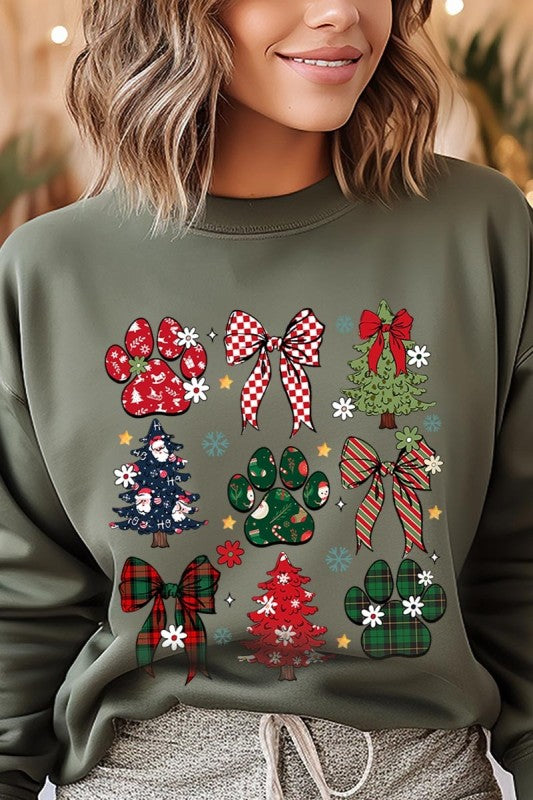 Christmas Bow Paw Graphic Sweatshirt