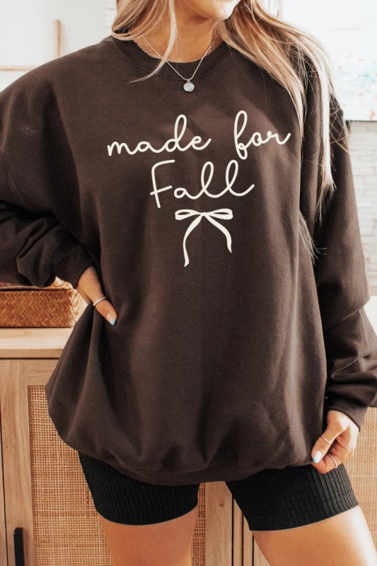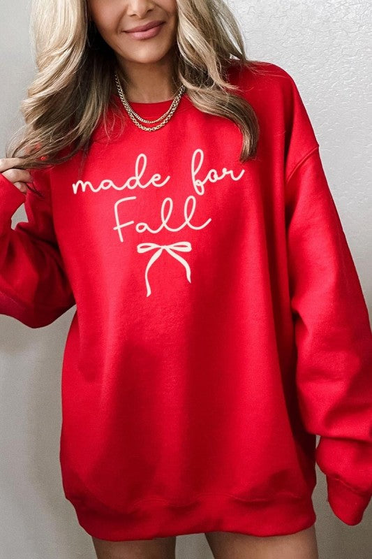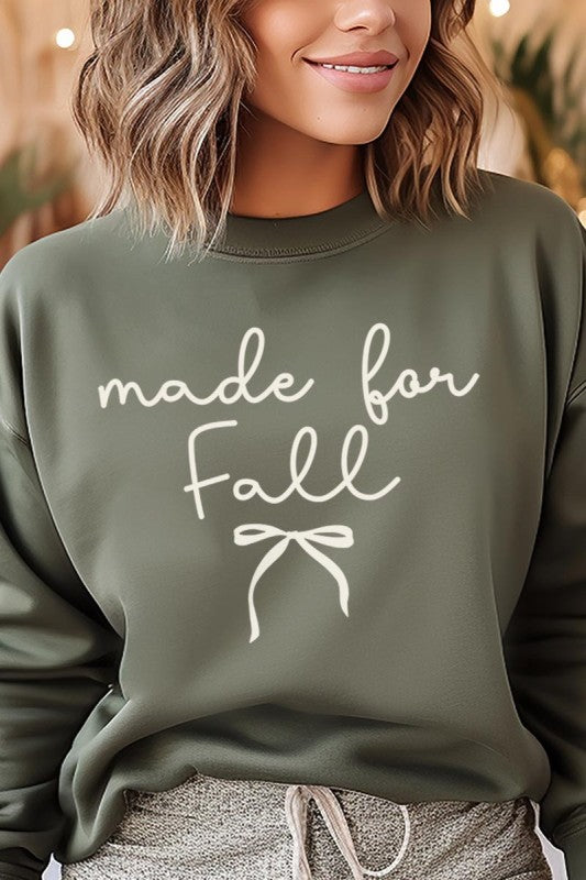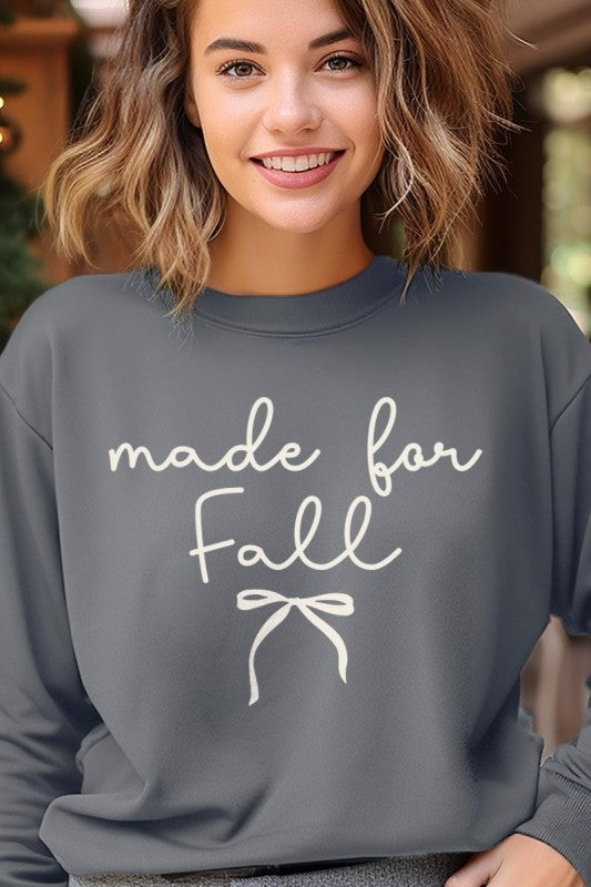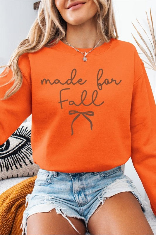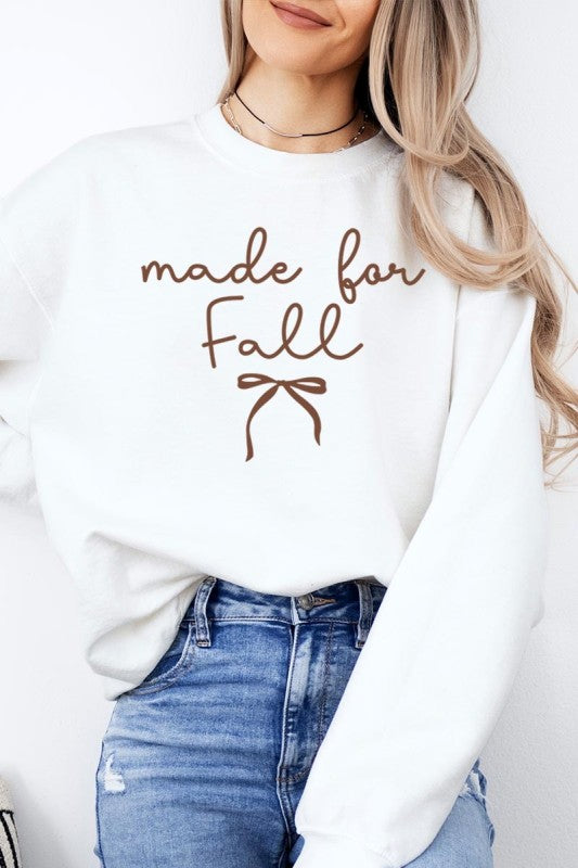 Made For Fall, Bow, Autumn, Thanksgiving Graphic Fleece Sweatshirt.