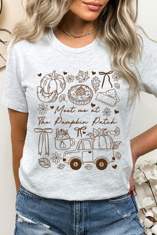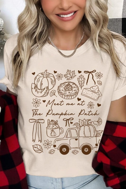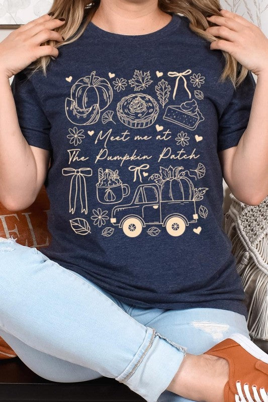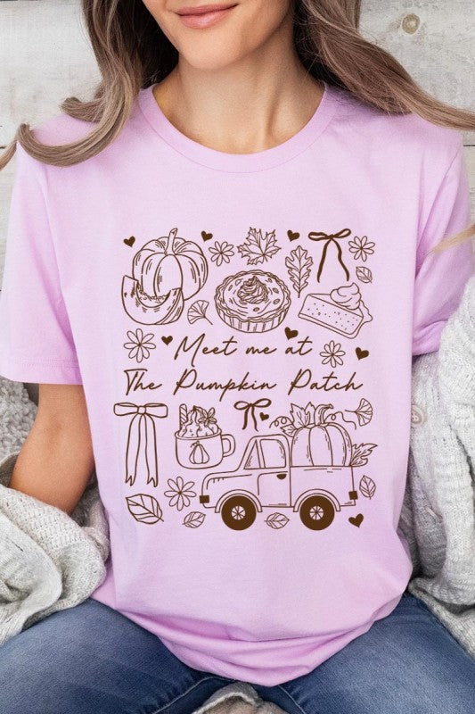 Meet Me At The Pumpkin Patch Fall, Autumn, Cozy Vibes, Fall Truck, Autumn Pie, Fall Thanksgiving Graphic Tee.
